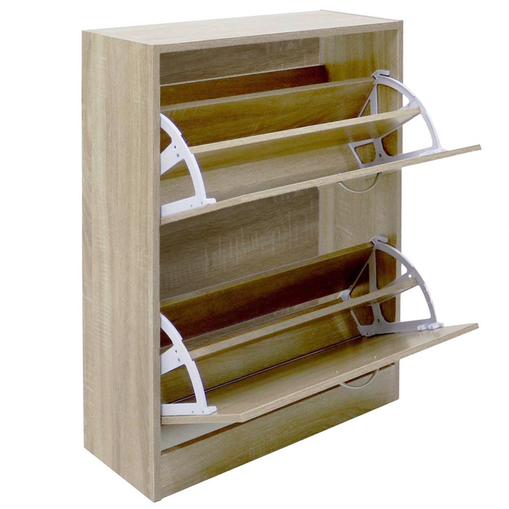 Caratterizzata da 2 ante a ribalta con doppia profondità, questa scarpiera permette di riporre più paia di scarpe rispetto a quelle classiche e di averle subito tutte a portata di mano.