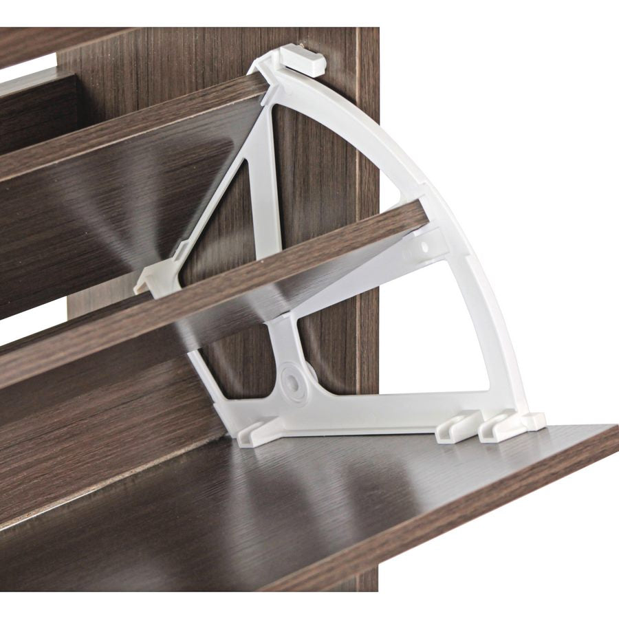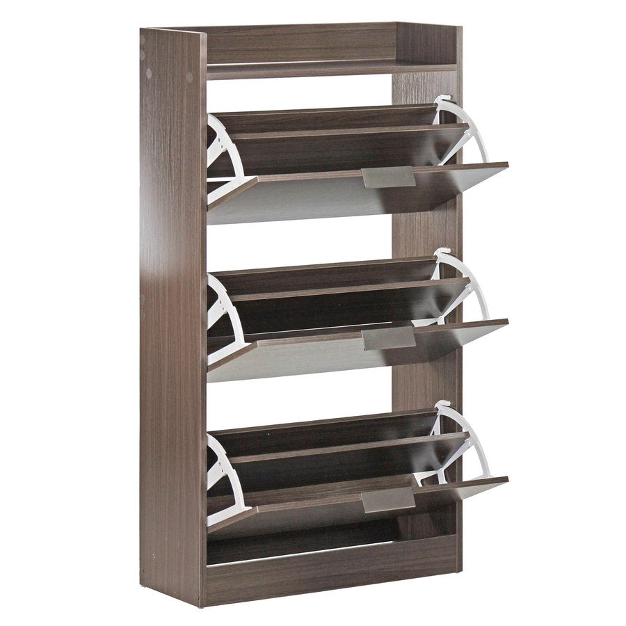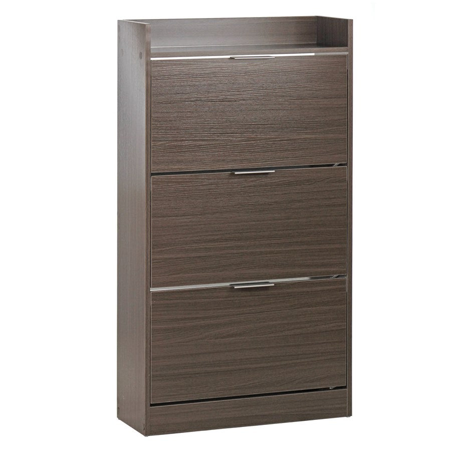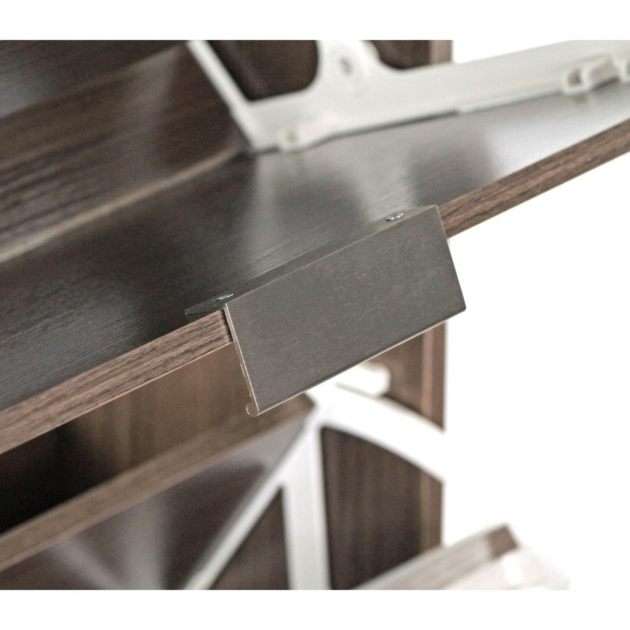 Scarpiera salvaspazio 3 ribalte. Tutte le tue calzature troveranno spazio in questa bellissima scarpiera salvaspazio dal design moderno. La nuova scarpiera Marta ha struttura in legno melaminico color noce, 3 ribalte con doppio ripiano e maniglie stilizzate in alluminio.