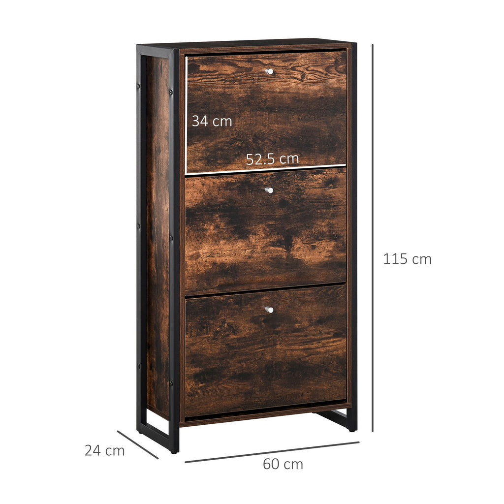 Schuhregal 3 Fächer 60 x 24 x 115 cm 12 Paar in braunem Holz und Metall