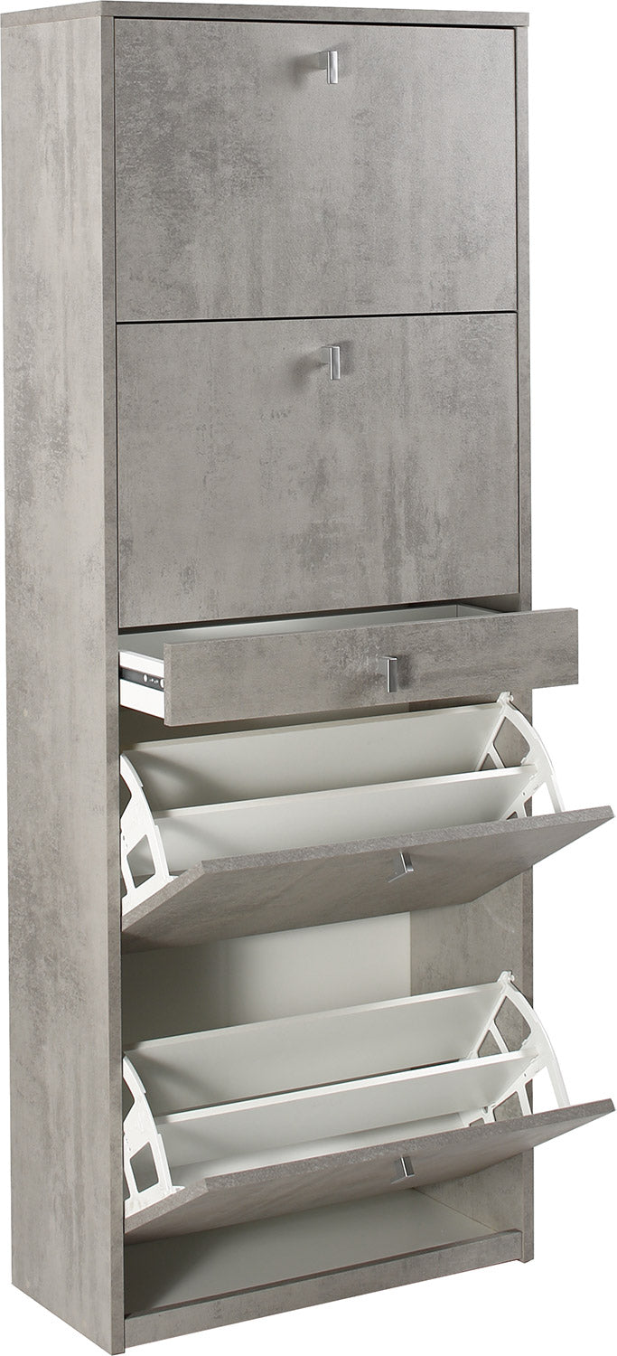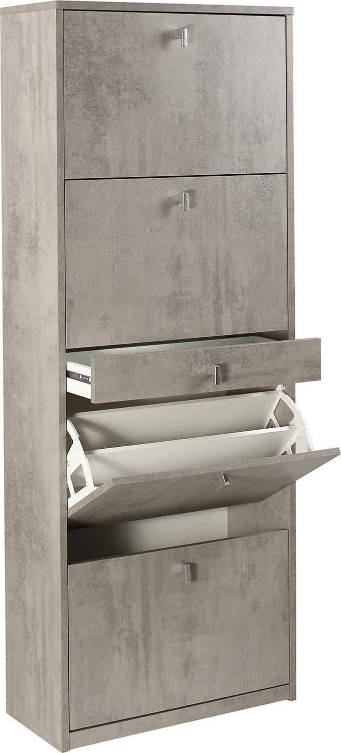 Schuhschrank 4 Türen 1 Schublade 63x164x29 cm Zement
