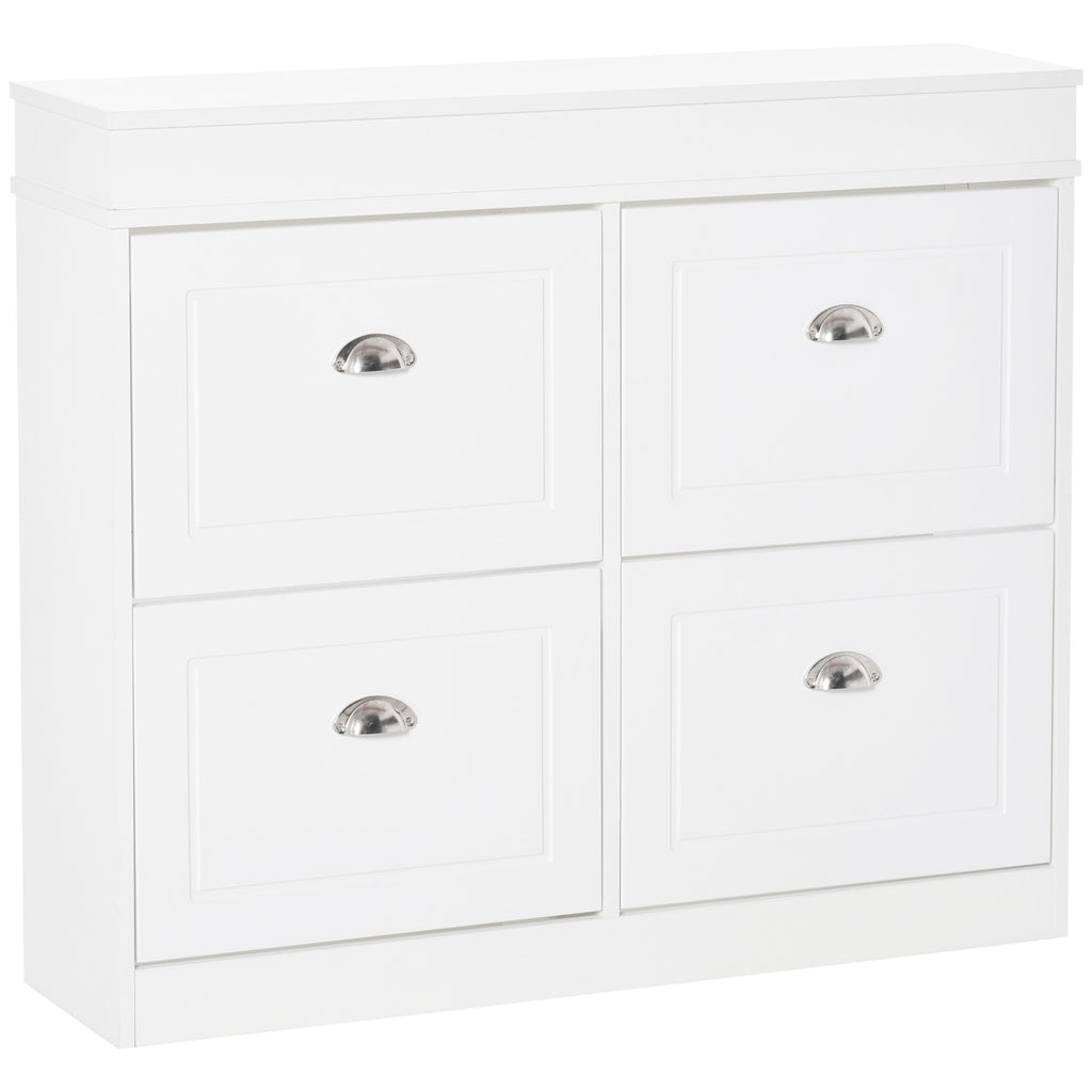 Schuhregal 4 Klappschubladen 32 Paar 98x24x83 cm in Weiß Holz