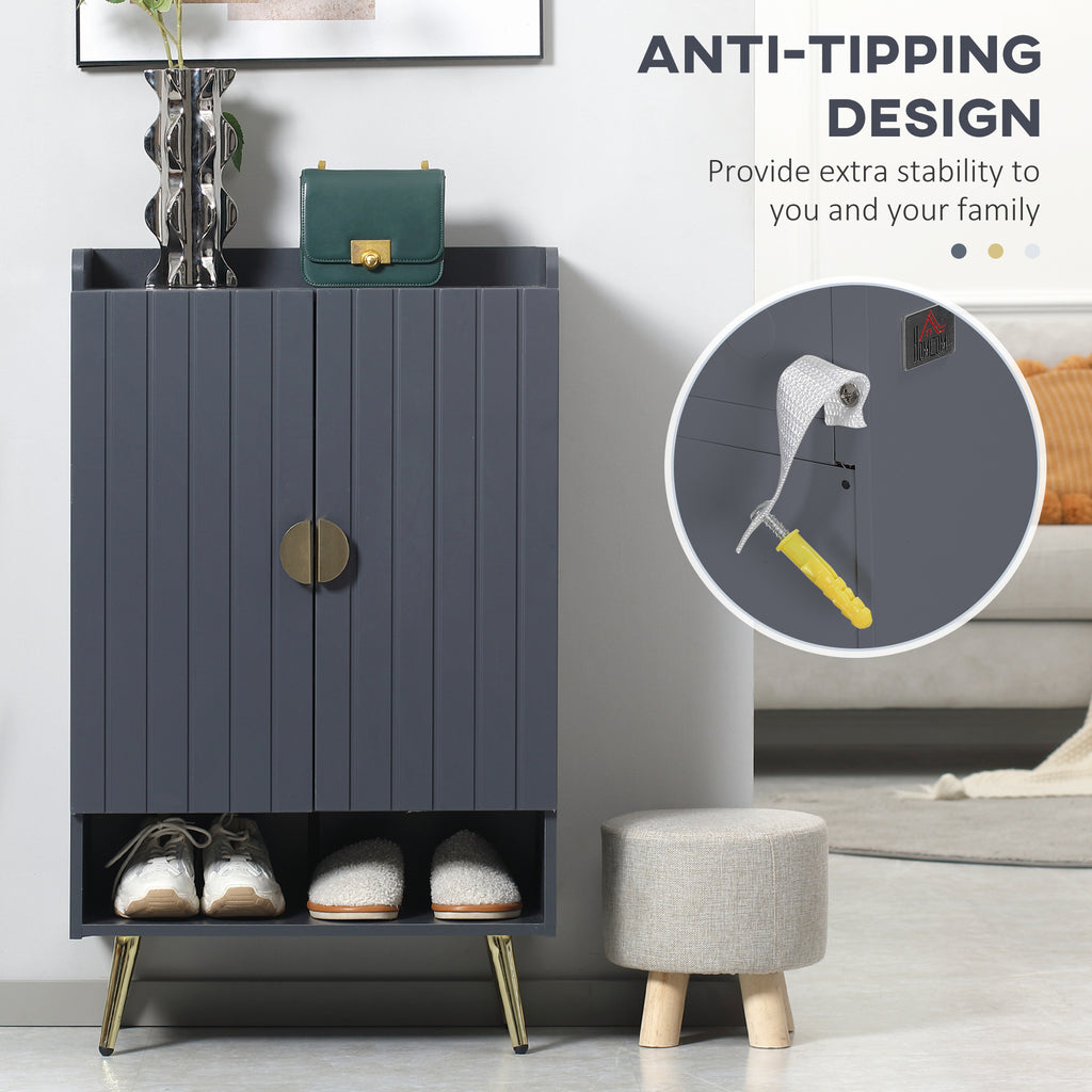 - ELEGANT: Das Paneel dieses modernen Schuhschranks passt perfekt zu den Griffen und seinen goldenen Füßen. Der Schuhschrank wird sich als tolle Ergänzung für Ihr Zuhause erweisen, da er direkt aus der Verpackung in eine Eingangshalle oder einen Flur passt