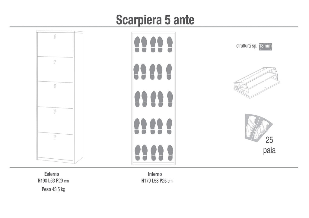 Schuhschrank 5 Türen 63x190x29 cm Ulme hell