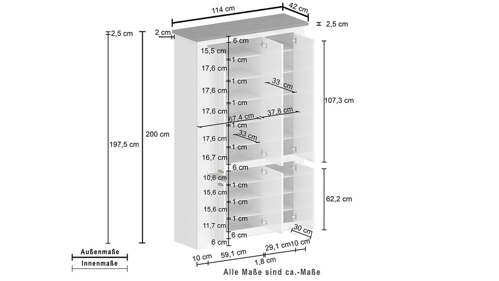 Scarpiera 6 Ante 114x42x200 cm Figo 6A Bianco Opaco/Report Grigio