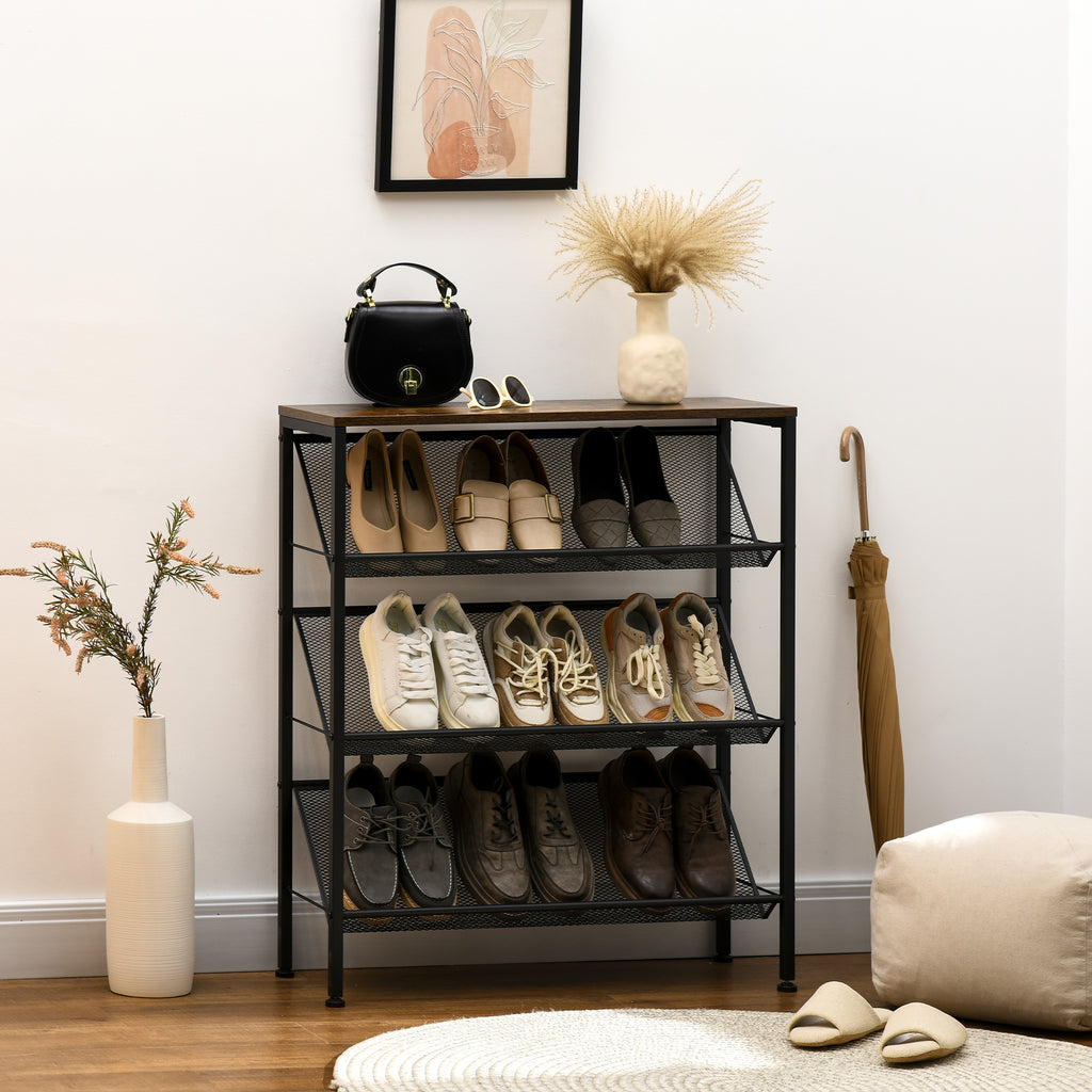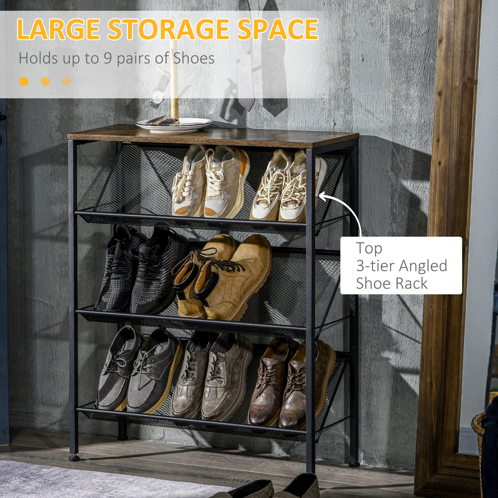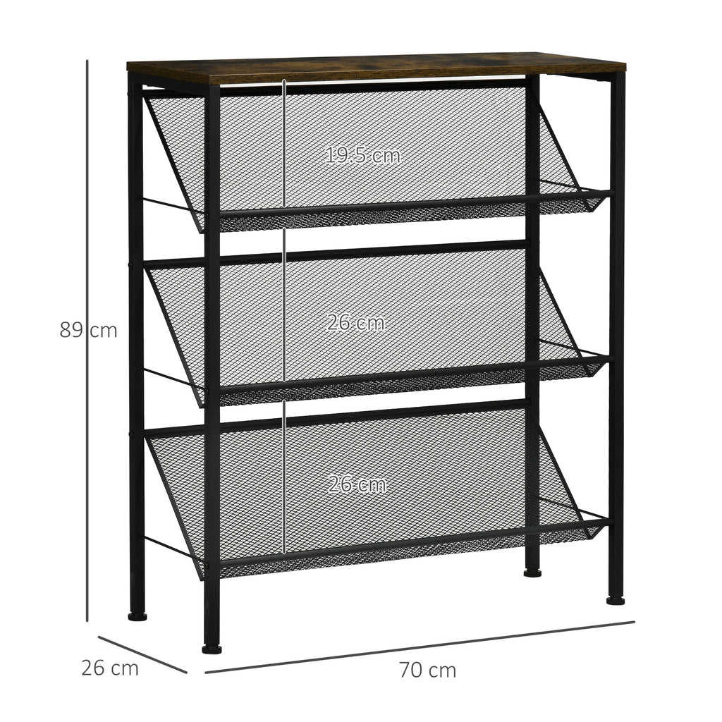 Scarpiera da Ingresso 9 Paia di Scarpe 70x26x89 cm 3 Ripiani e Piano d'Appoggio in Acciaio e Truciolato Nero