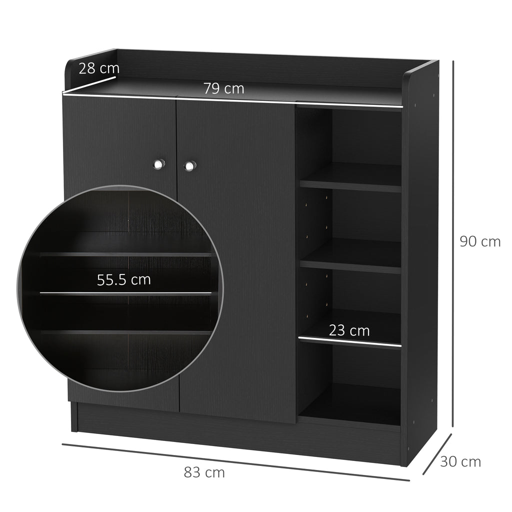 - Mit zwei Türen, drei Regalen und vier Ebenen, um all Ihre Schuhe und Accessoires in Ordnung zu halten.
