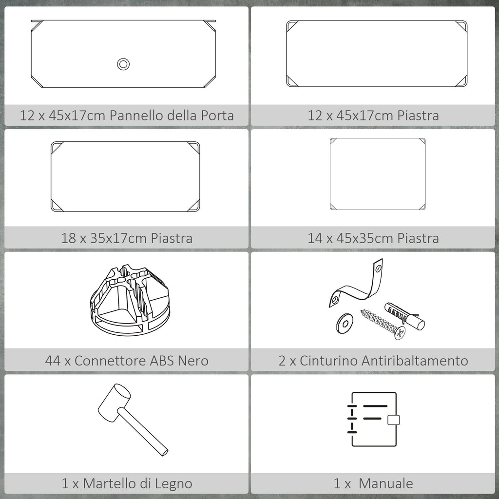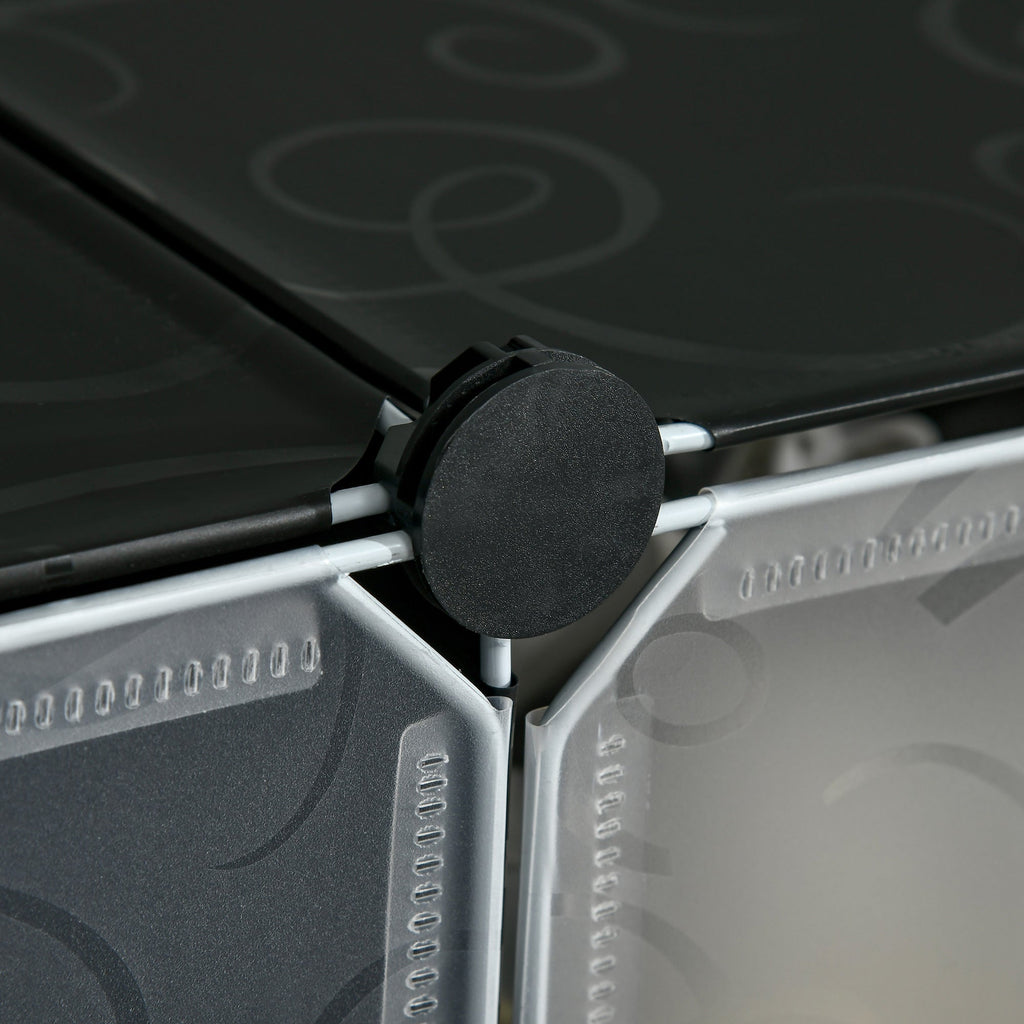 Modulares Schuhregal 94 x 37 x 108 cm 12 Würfel aus Kunststoff und schwarzem und weißem Stahl