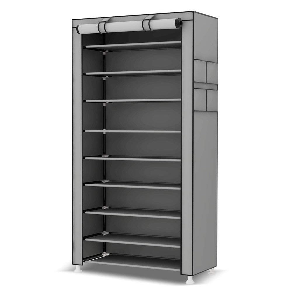 Scarpiera Salvaspazio 10 Ripiani 27 Paia Scaffale Acciaio e Tessuto TNT Grigio