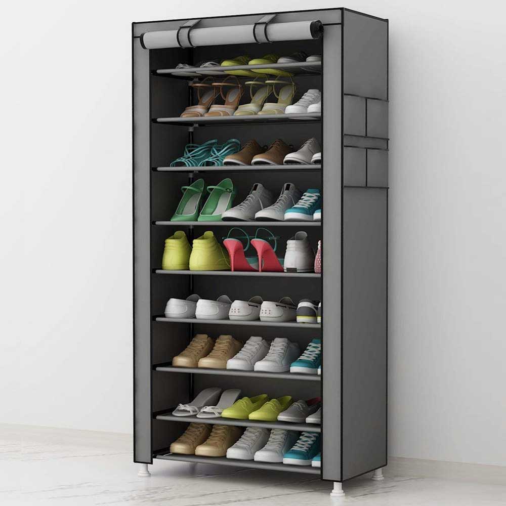 Scarpiera salvaspazio pieghevole su 9 livelli (senza rivestimento 10 ripiani) ideale per casa, campeggio e in vacanza.