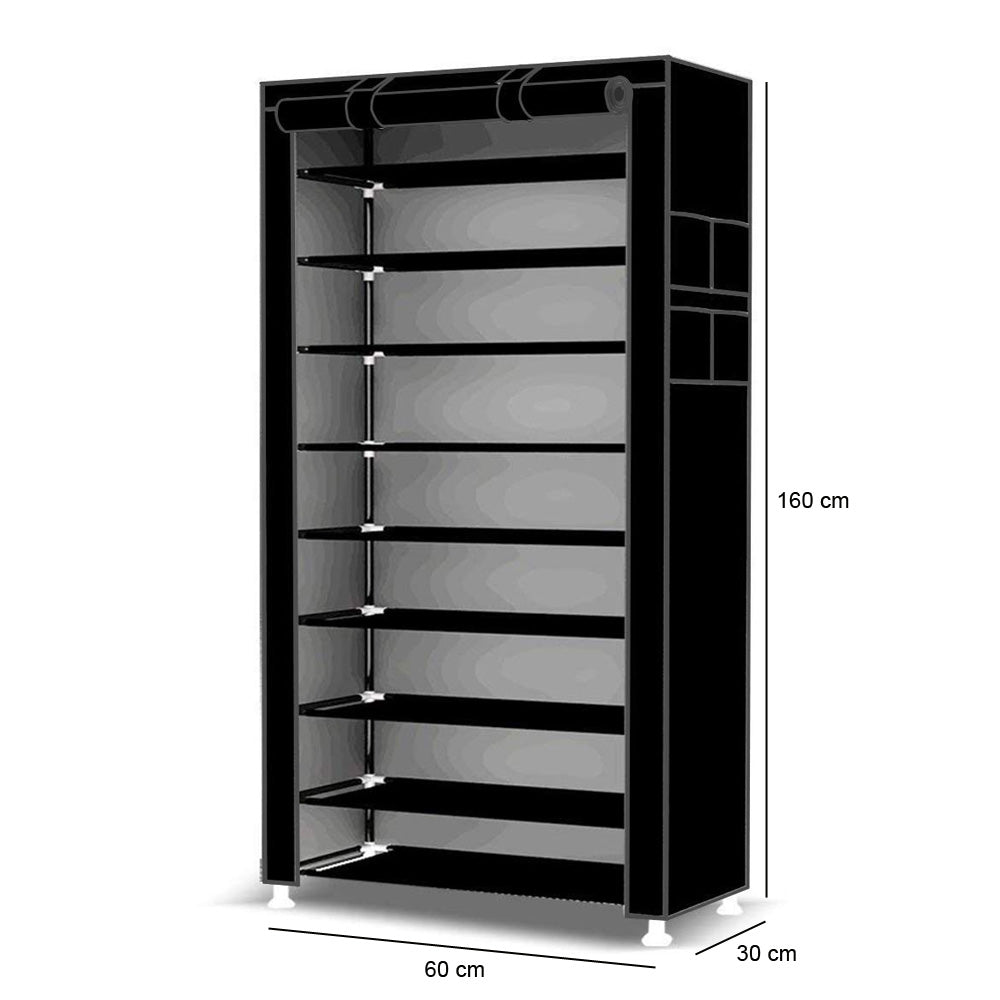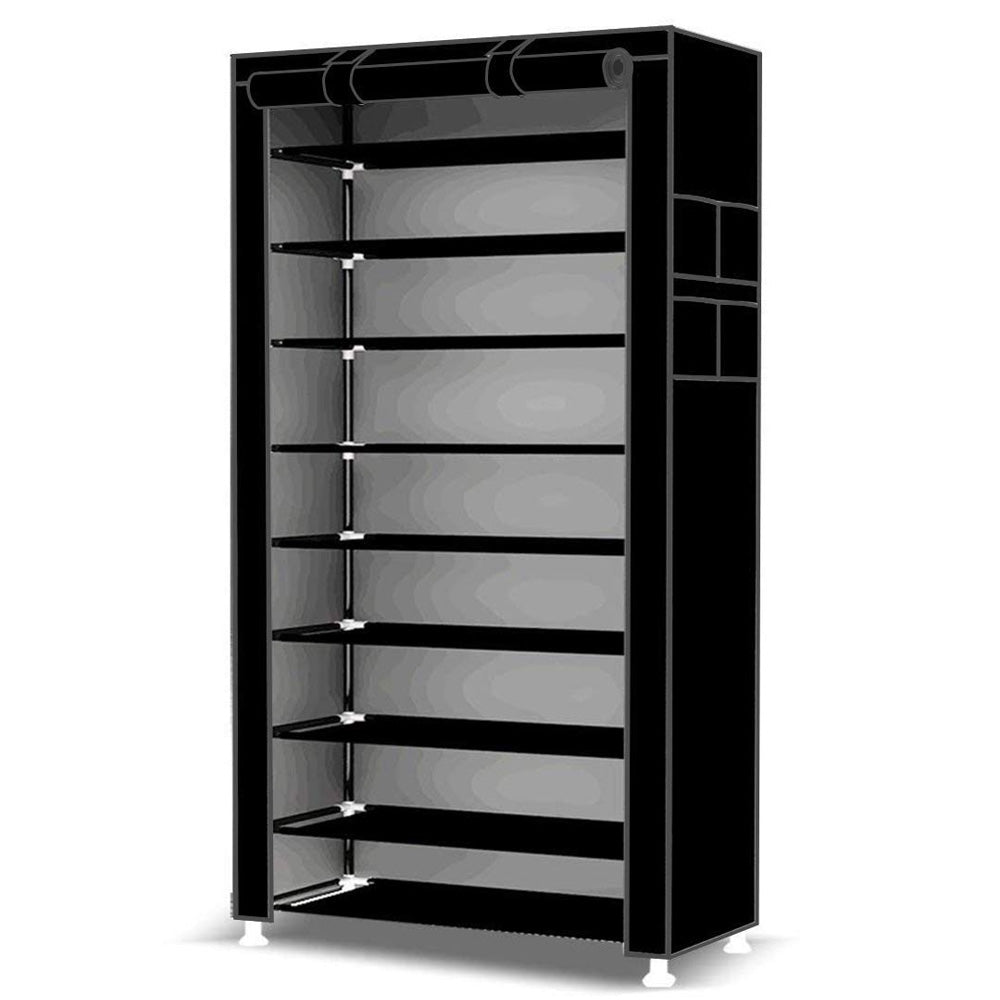 Scarpiera Salvaspazio 10 Ripiani 27 Paia Scaffale Acciaio e Tessuto TNT Nero