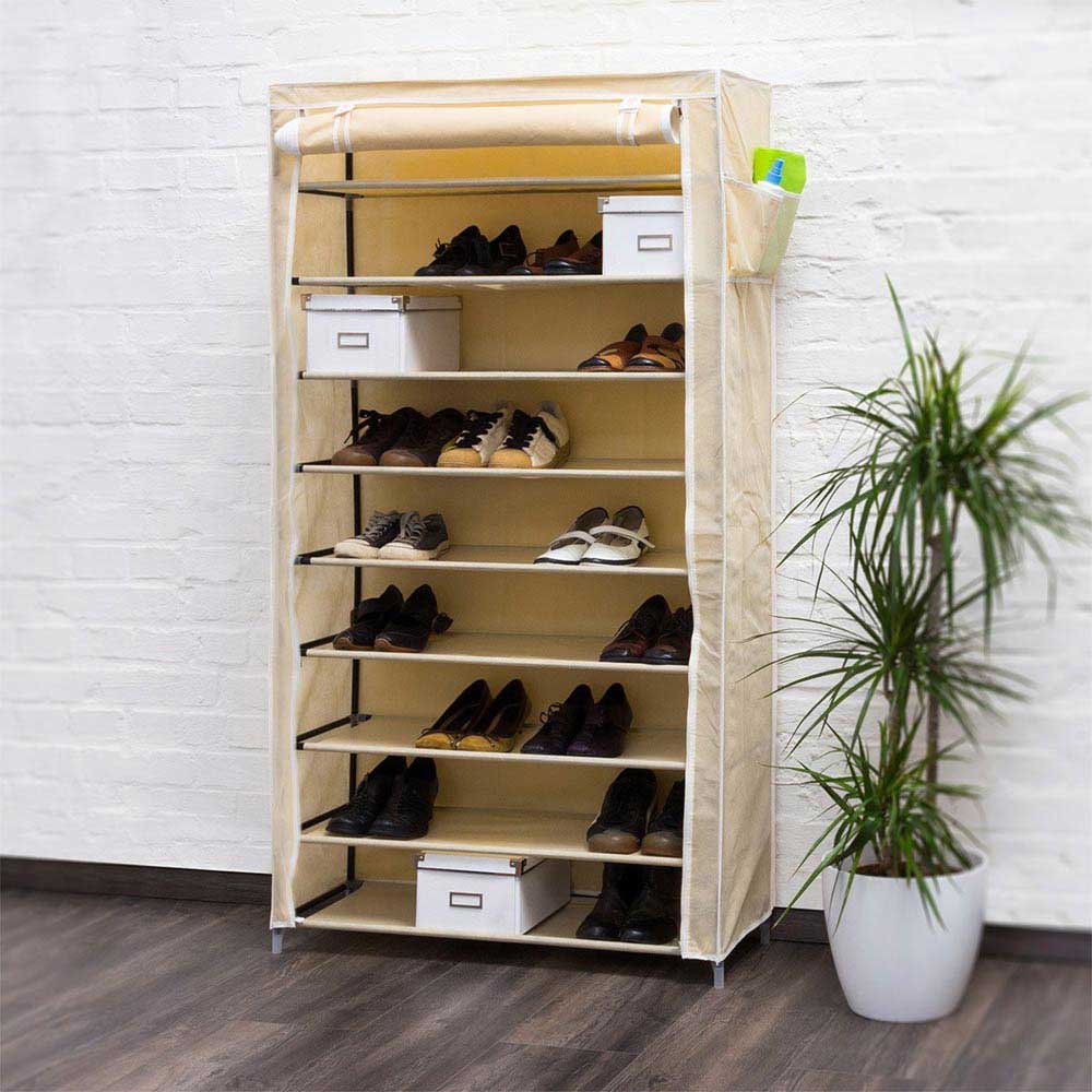 Scarpiera Salvaspazio 10 Ripiani 45 Paia Scaffale Acciaio e Tessuto TNT Beige