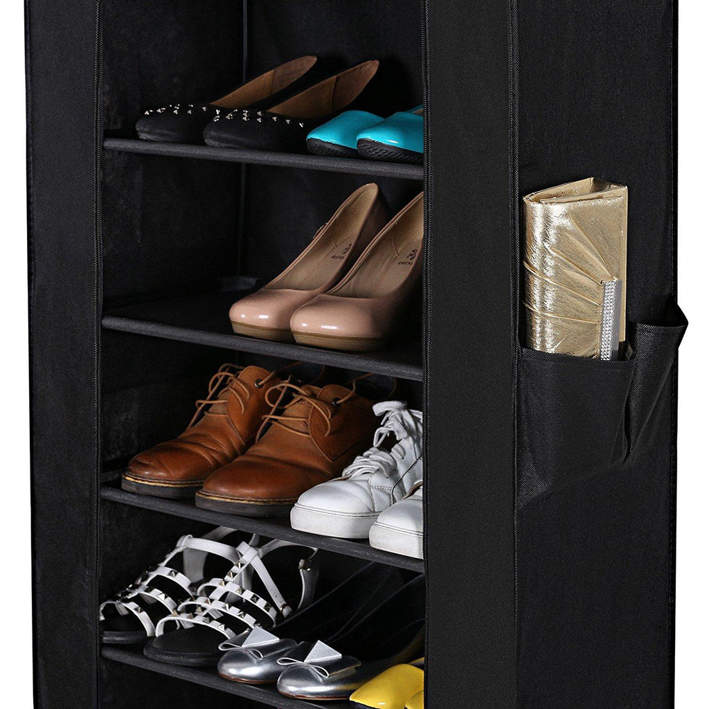 Platzsparendes Schuhregal 10 Ablagen 61,5x31x5x173,5 cm Rizzetti Schwarz
