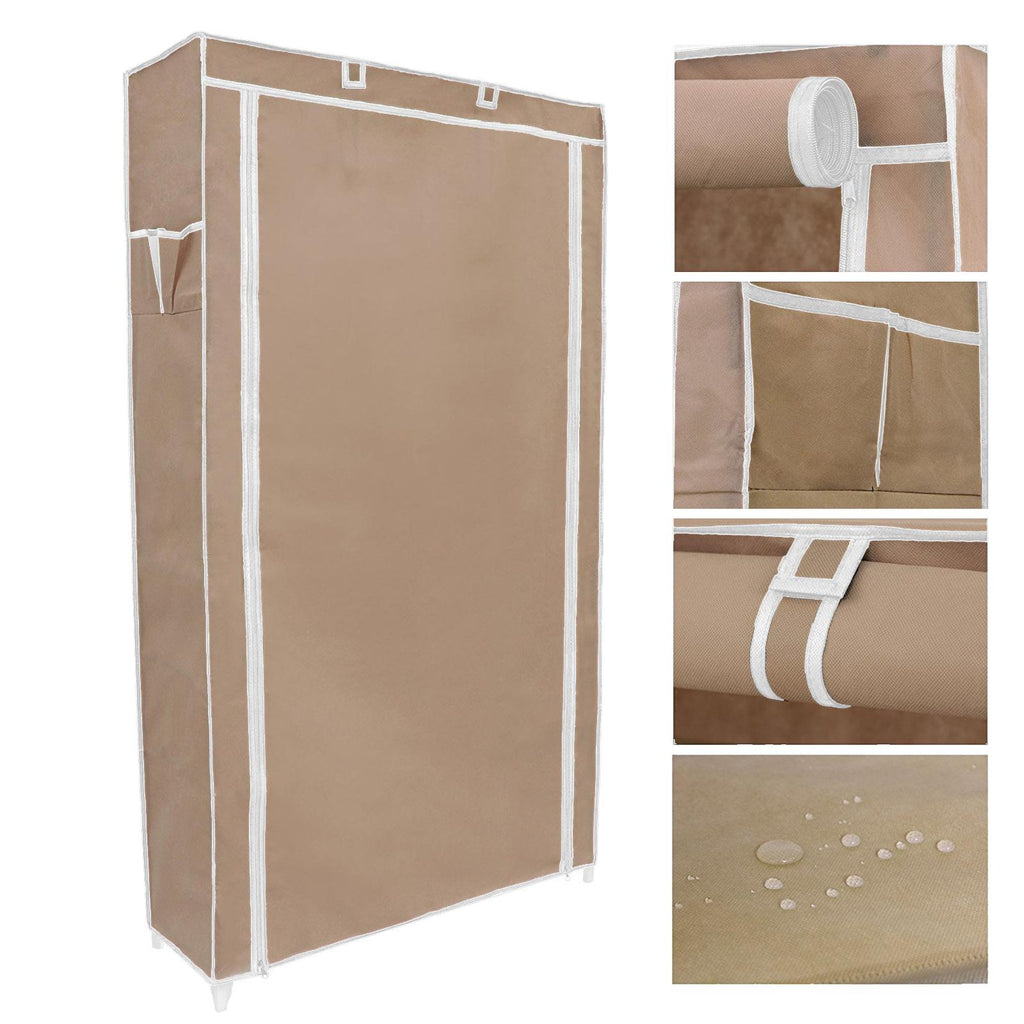 Verschließbarer Kleiderschrank mit Rolltür, die Vordertür kann mit oberen Klettverschlüssen für eine bessere Praktikabilität gestoppt werden, der Reißverschluss hilft Ihnen, die Türen leicht zu öffnen und zu schließen.