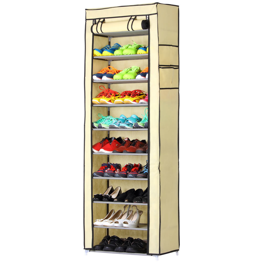 Scarpiera Salvaspazio 11 Ripiani 30 Paia Scaffale Acciaio e Tessuto TNT Beige