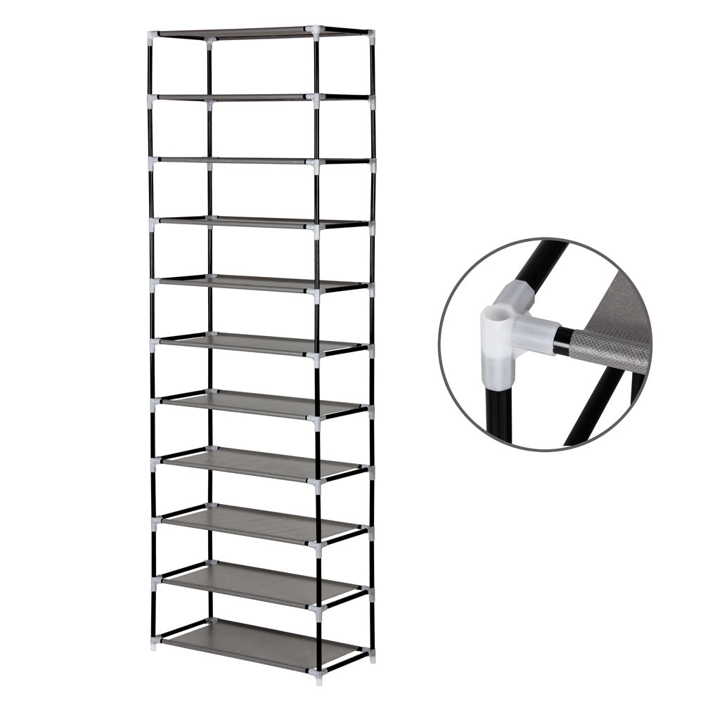 Scarpiera salvaspazio pieghevole su 10 livelli (senza rivestimento 11 ripiani) ideale per casa, campeggio e in vacanza. Pratica e funzionale con montaggio facile per averla a disposizione in qualsiasi momento.