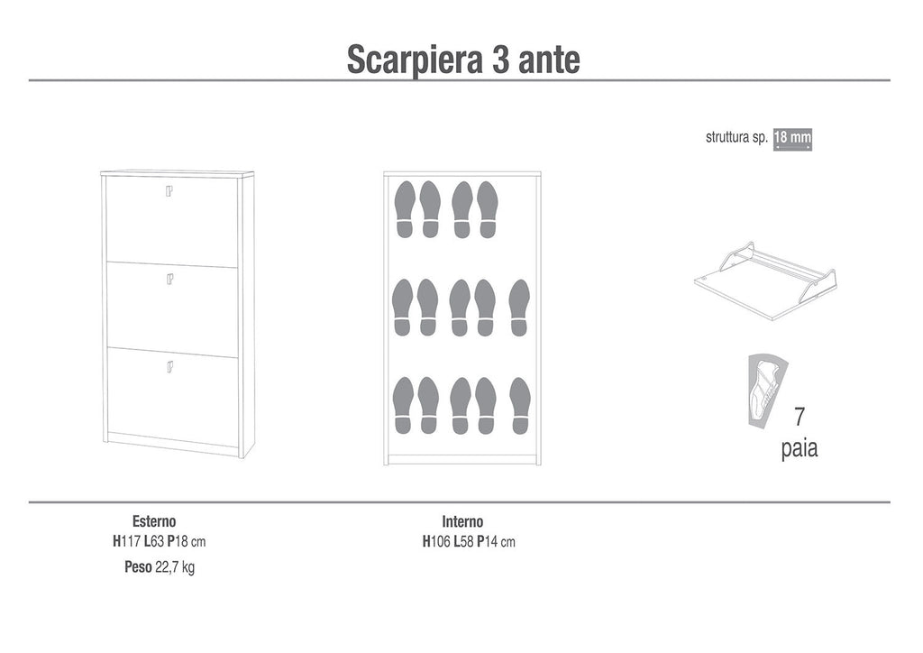 - Capacità: 7 paia di scarpe