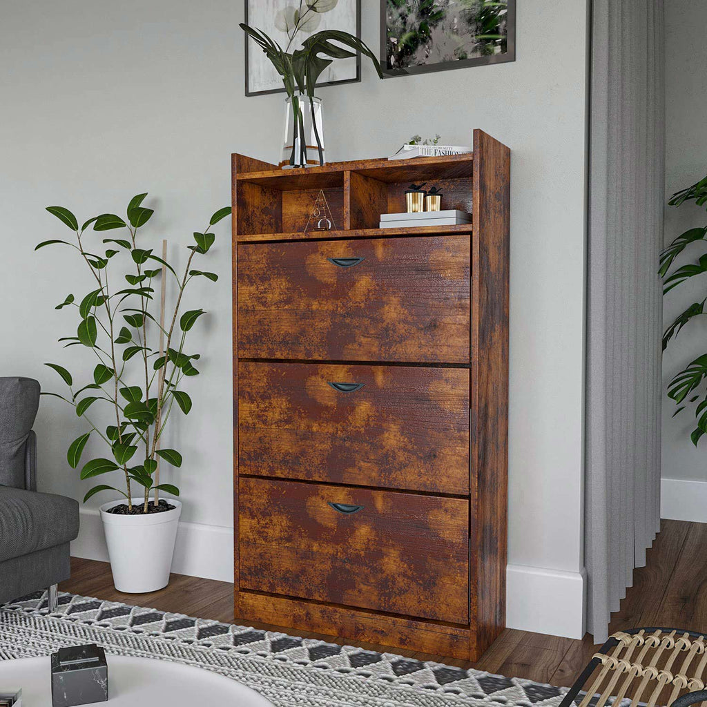 Scarpiera salvaspazio compatta ed elegante, ideata per aiutarti a mantenere ordine e pulizia nei propri ambienti.Mobile scarpiera costituito in legno melaminico ad alto spessore, la struttura stabile e solida conferisce resistenza e durata nel tempo, in aggiunta a maniglie in alluminio satinato e il meccanismo di aperture ante in ABS.Le 3 ante doppie a ribalta, permettono l'archivio di qualsiasi tipo di scarpa (sneakers, tacchi, infradito, mocassini?); mobile slim perfetto per risparmiare spazio al contempo ordinando e organizzando casa, ideale per l'ingresso, ripostiglio o camera da letto.