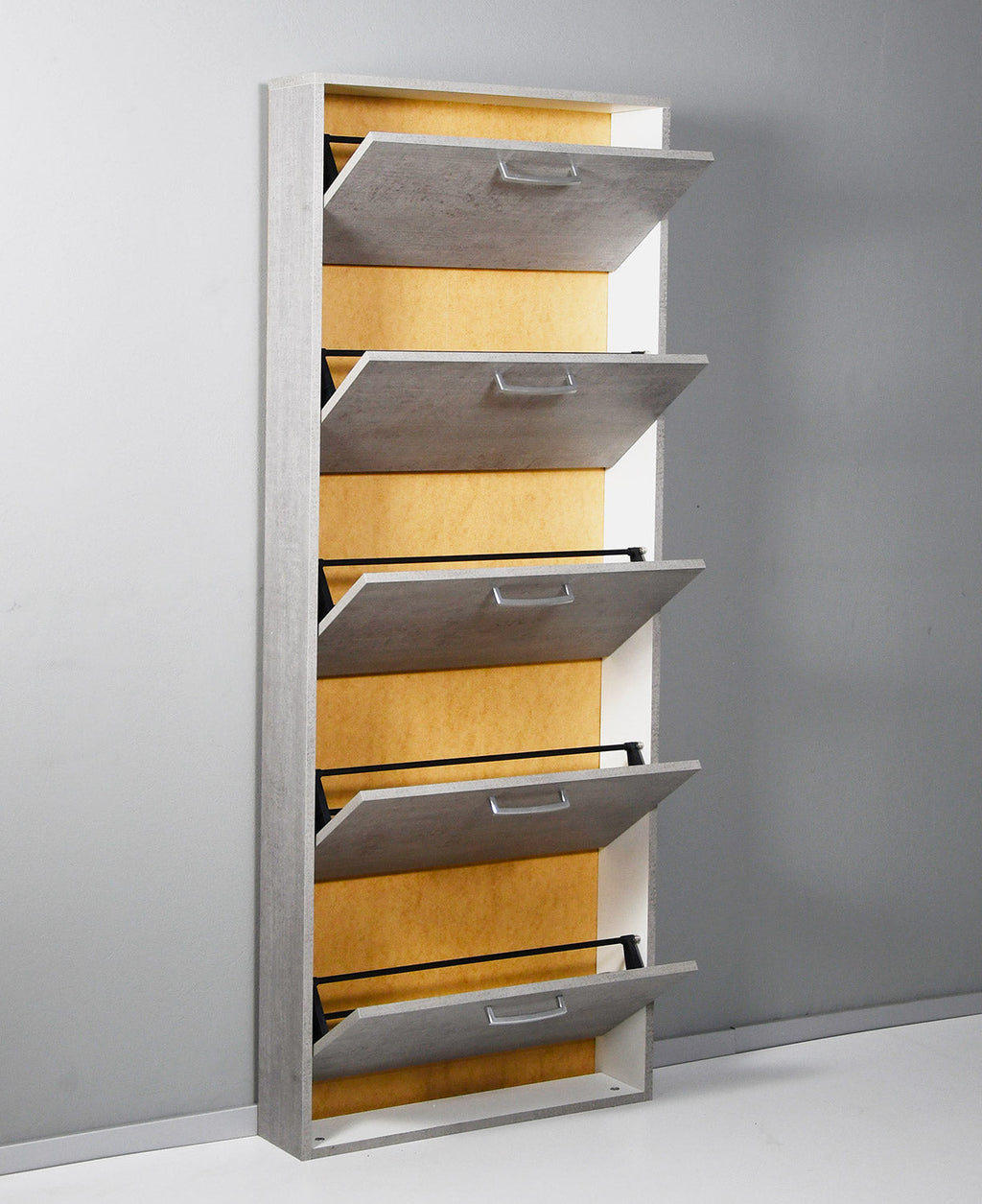 Scarpiera Salvaspazio 5 Ante 15 Paia 65x15x164 cm in Truciolare Nobilitato Cemento