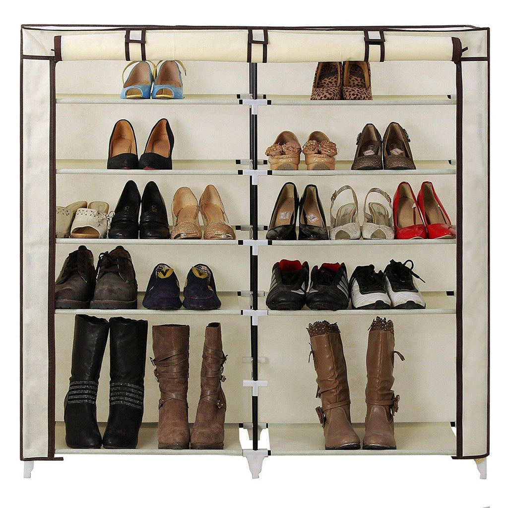 Im geschlossenen Zustand schützt die Tür Ihre Kleidung vor Schmutz und Staub, sehr funktionell, leicht und stabil. Es kann verschiedene Arten von Schuhen aufnehmen, wie z. B. Absätze, flache Schuhe, Halbschuhe, Babyschuhe, Winterstiefel usw. Ausgestattet mit zwei Taschen auf beiden Seiten, die mit Zubehör wie Schuhbürsten, Schuhlöffeln, Schlüsseln und anderen Mehrzweckartikeln verwendet werden können.