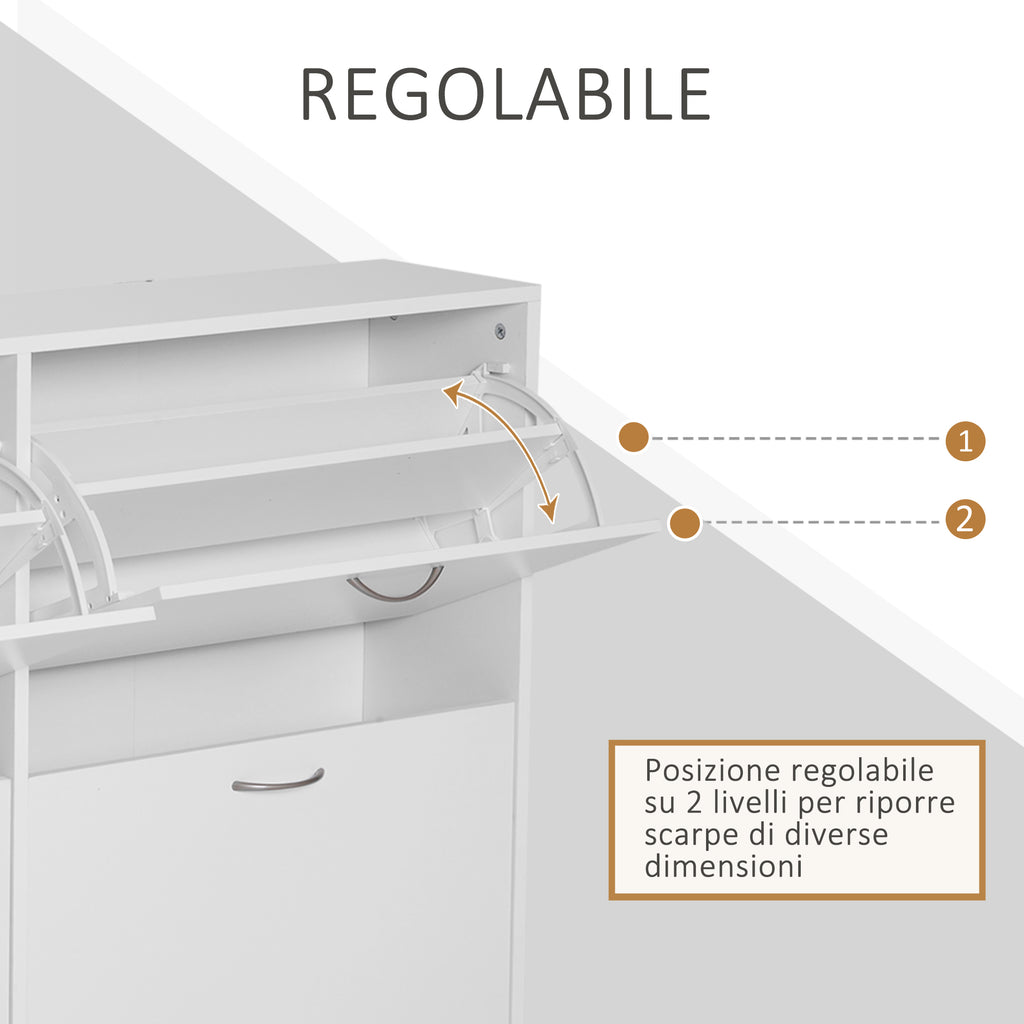 Platzsparendes Schuhregal für 24 Paar aus weißem Holz, 120 x 24 x 81 cm