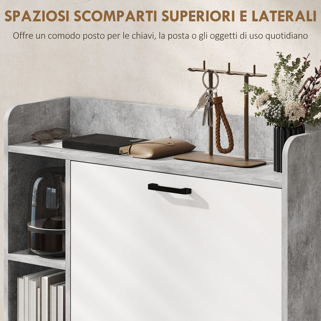 Scarpiera Slim Capacità 15 Scarpe 83x24x90,5 cm con 2 Cassetti Ribaltabili e 3 Vani Aperti Grigio