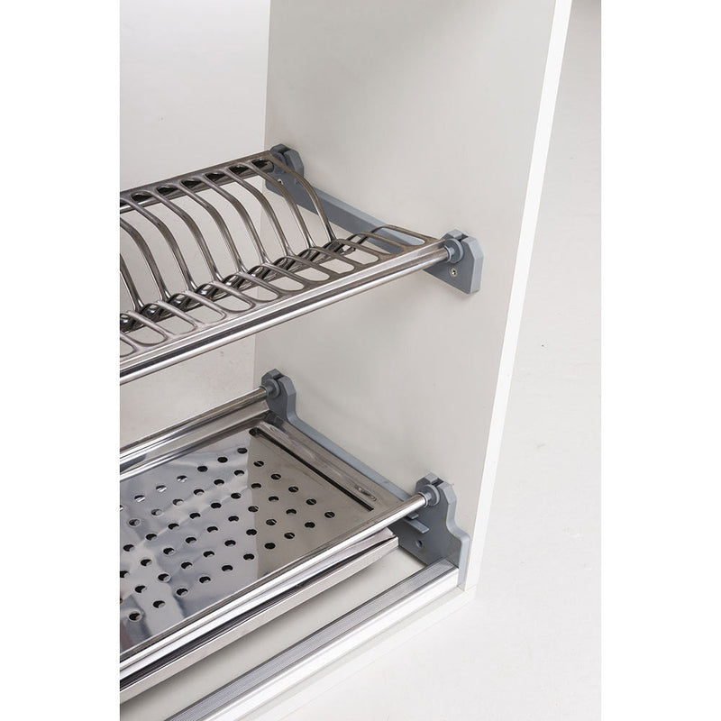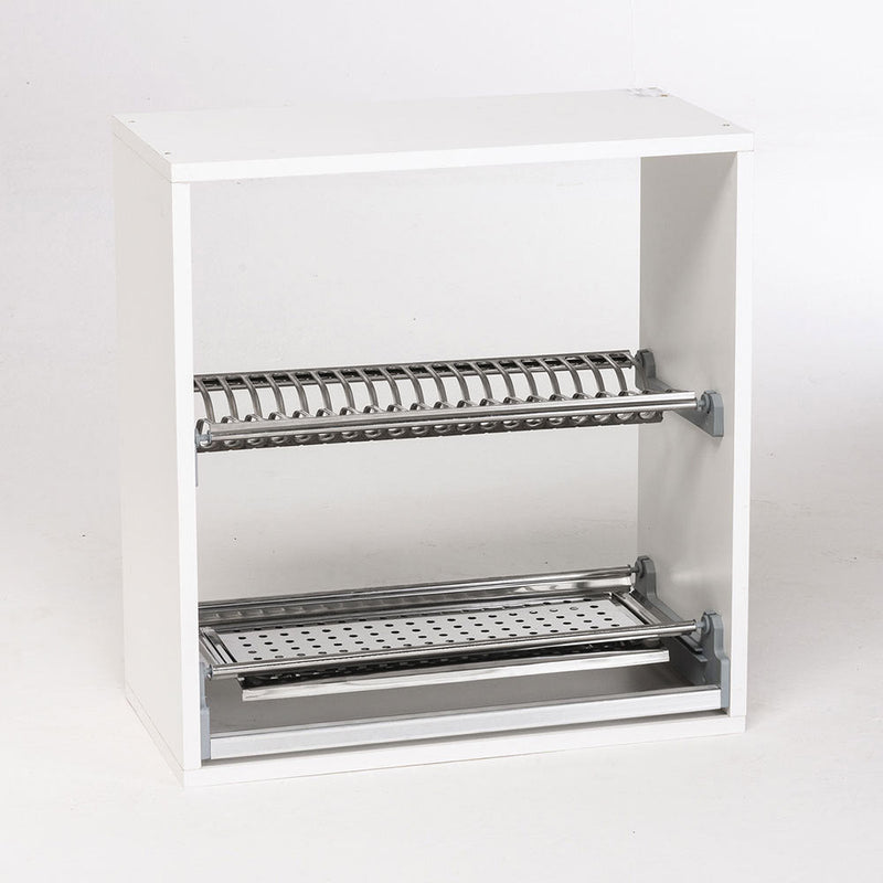Geschirrkorb mit Federbefestigung und ABS-Rahmen und mit Tropfschale; hergestellt in Italien. Ein sehr nützliches und funktionelles Zubehör, einfach zu montieren, in den Küchenoberschränken; widerstandsfähig und gepflegt in den Oberflächen, da es in Italien hergestellt wird.