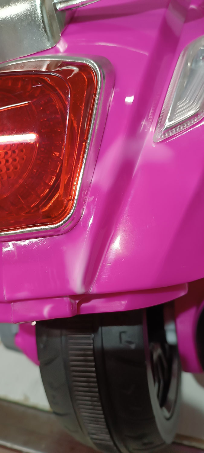 • Design Classico Vespa: La moto si presenta in un affascinante colore pastello, replicando le curve eleganti e il design inconfondibile della vera Vespa.