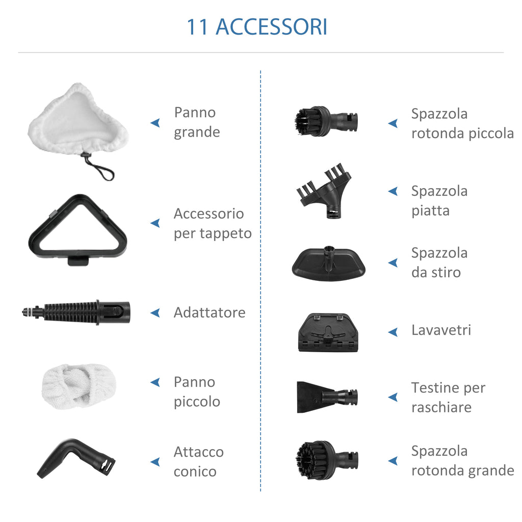 - 11 MITGELIEFERTES ZUBEHÖR: Enthält alle Zubehörteile, die zum Reinigen von Oberflächen und Gegenständen unterschiedlicher Größe benötigt werden. Im Paket finden Sie: 2 Tücher, 3 Bürstenköpfe, 3 Rundbürsten unterschiedlicher Größe, 2 Besenaufsätze.