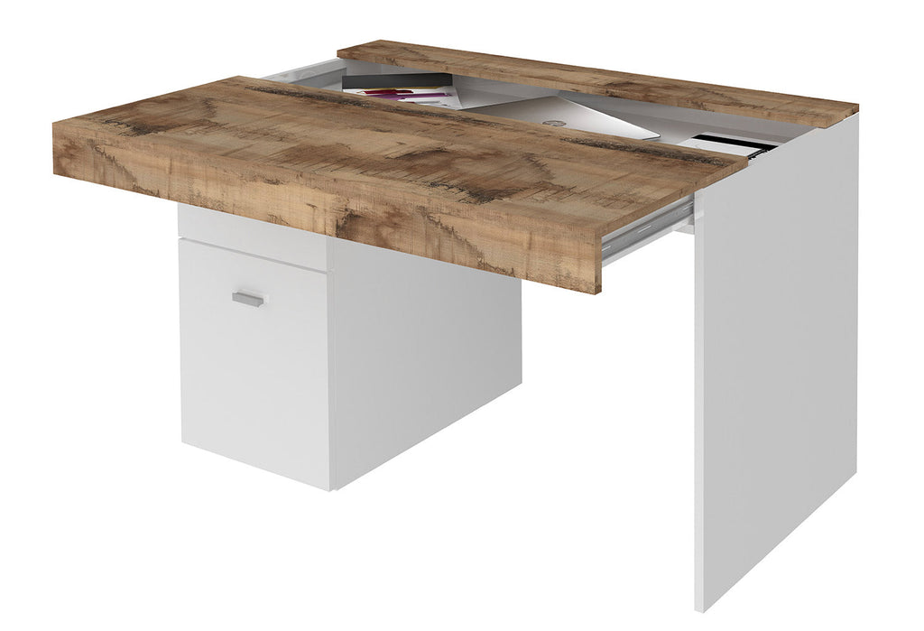 Scrivania 1 Anta 1 Cassetto 100x60x75 cm Sliding Bianco Lucido e Acero Pereira