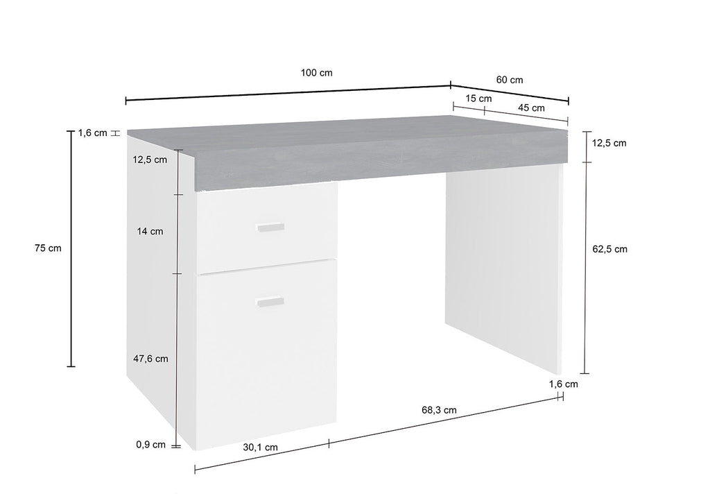 - Dimensioni scrivania: 100 x 60 x 75 cm (LxPxA)