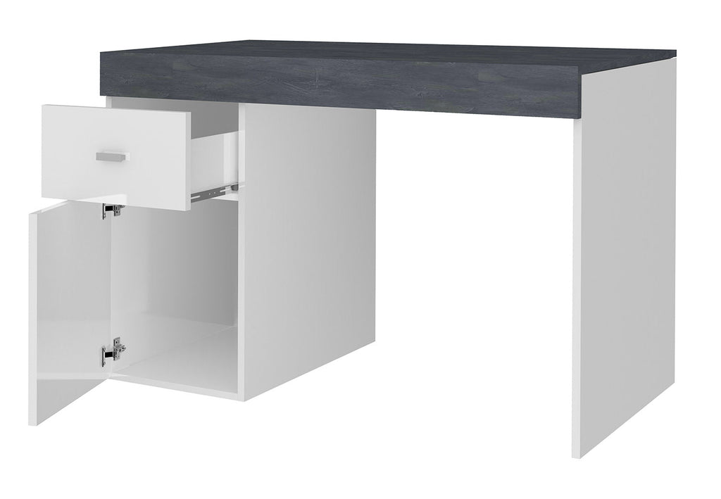 Scrivania 1 Anta 1 Cassetto 100x60x75 cm Sliding Bianco Lucido e Ardesia