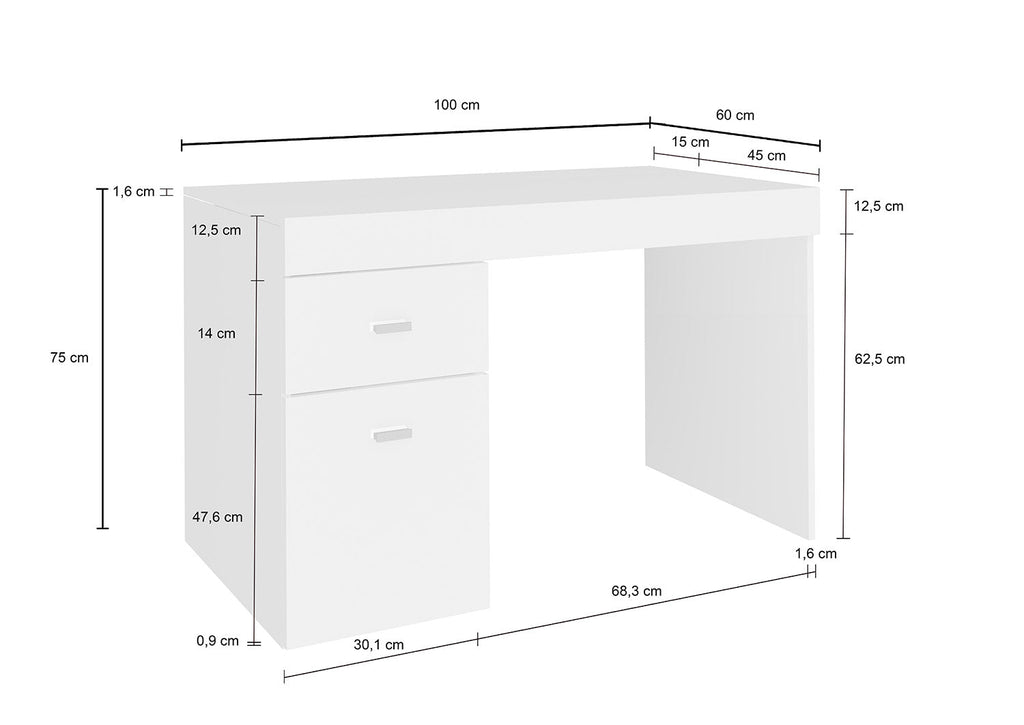 • Dimensioni scrivania: 100 x 60 x 75 cm (LxPxA)