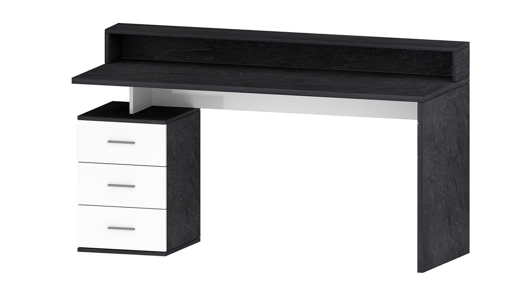 Scrivania 3 Cassetti e Ripiani a Giorno 160x60x90 cm New Selina Bianco Lucido/Report Grigio