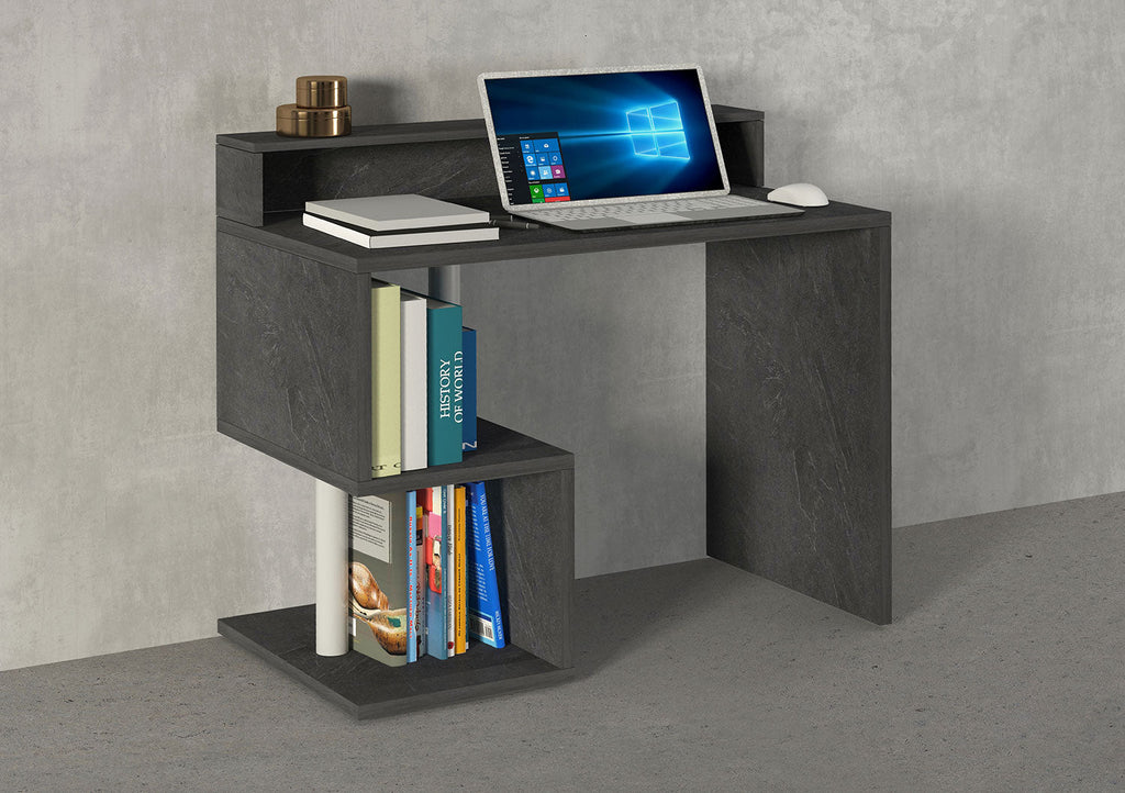 Lo stile della scrivania ESSE con sopralzo la rende perfetta per un ambiente moderno dallo stile contemporaneo. Grazie alle sue dimensioni contenute riesce a essere inserita anche negli ambienti più piccoli, permettendo sempre uno spazio comodo sul quale riporre il proprio computer. Sotto al piano di lavoro, la scrivania ESSE presenta due comodi ripiani d'appoggio. La struttura è in melaminico spessore 25 mm. La scrivania ESSE da 100 cm con sopralzo è caratterizzata da un design 100% Made in Italy che fa dell'innovazione il suo elemento principale. La struttura, infatti, priva di cassetti utilizza la sua forma a S per creare ripiani dove lavorare e archiviare libri, documenti e oggetti utili per compiere le proprie mansioni.