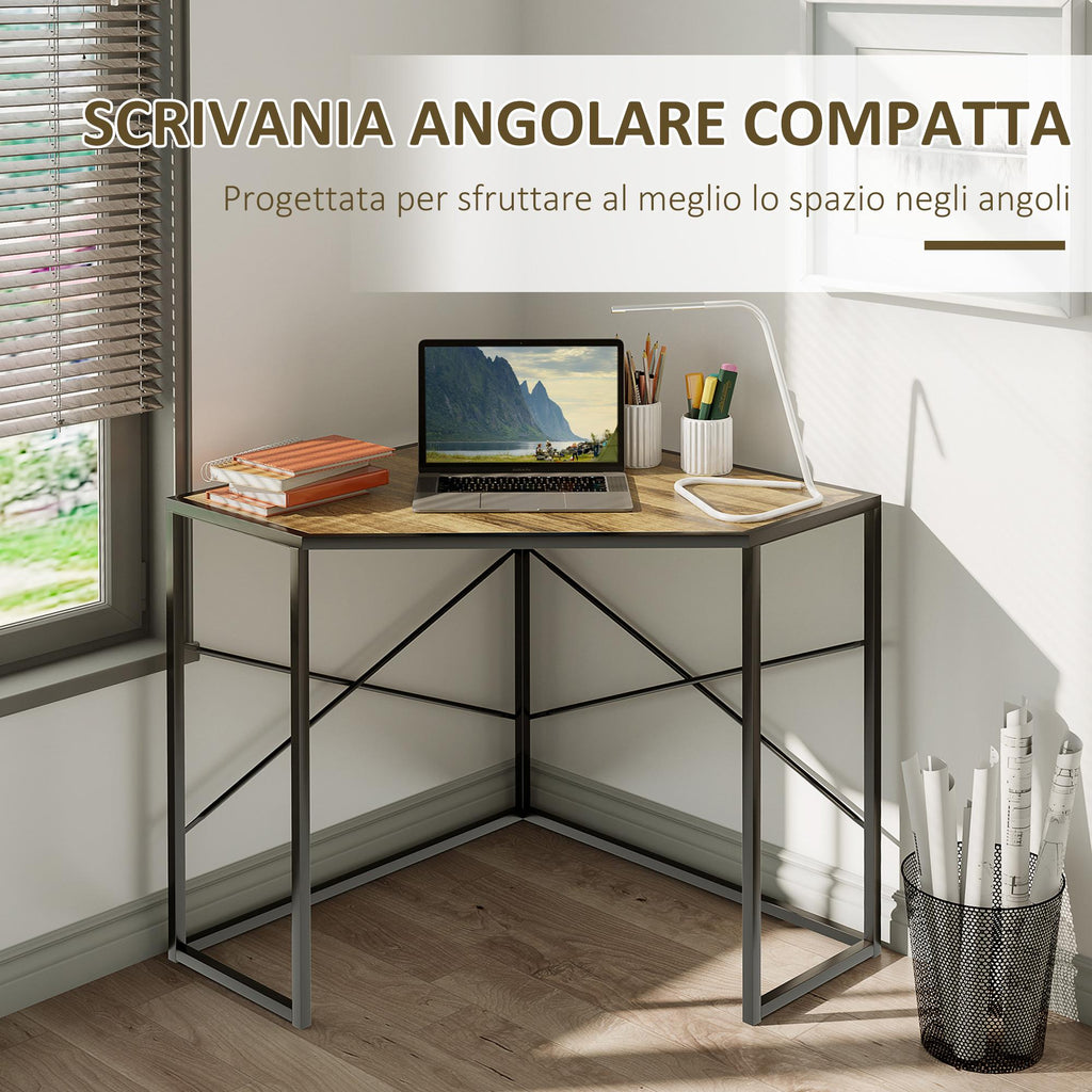 Eckschreibtisch 80 x 80 x 77,5 cm aus Stahl und schwarzer und brauner Spanplatte