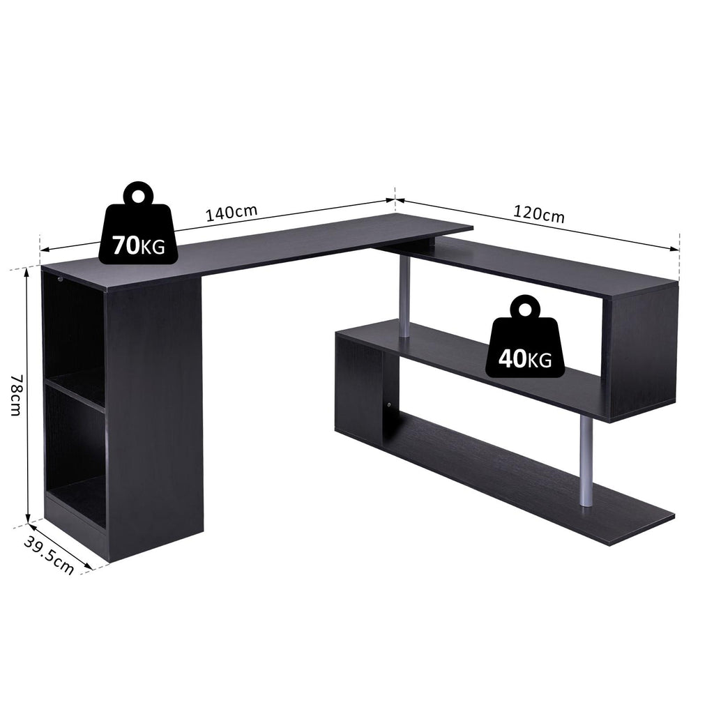 Eckschreibtisch 140 x 120 x 78,2 cm mit Schubladen und schwarzem Drehregal