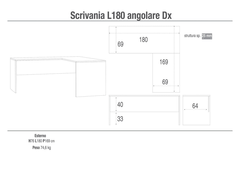 Rechter Eckschreibtisch 180x76x169 cm Zement