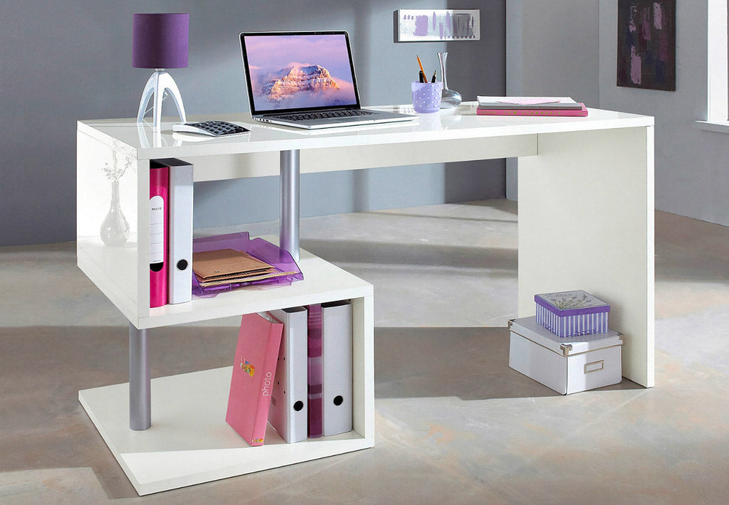 Scrivania con 2 Ripiani 140x60x77,5 cm Esse Bianco Lucido