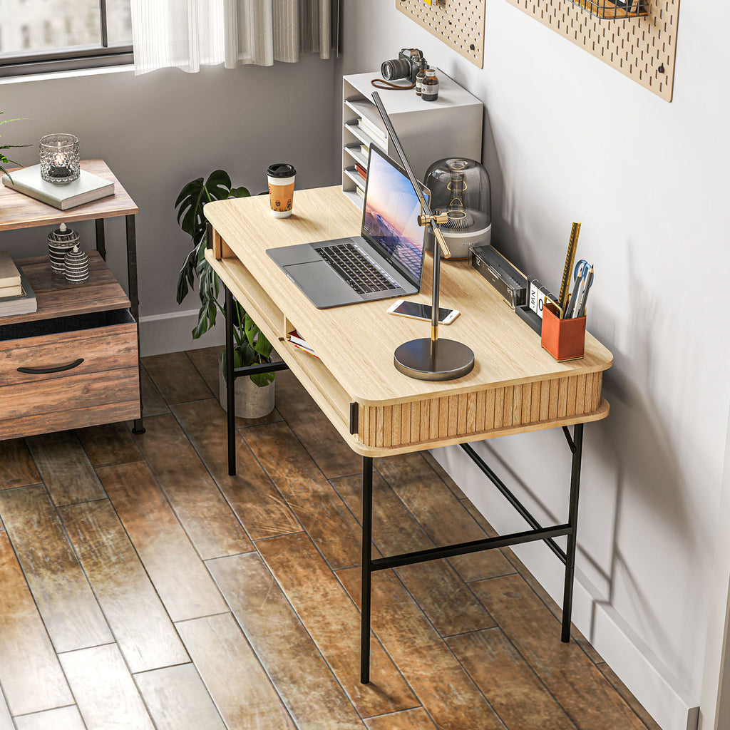 - GRANDE PIANO D'APPOGGIO: L'ampio piano di lavoro della scrivania per computer offre abbondante spazio per il tuo pc, documenti e accessori