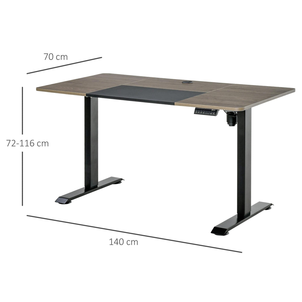 Schreibtisch mit elektrischer Höhenverstellung 140x70x72-116 cm in Metall und Teak und schwarzer Spanplatte