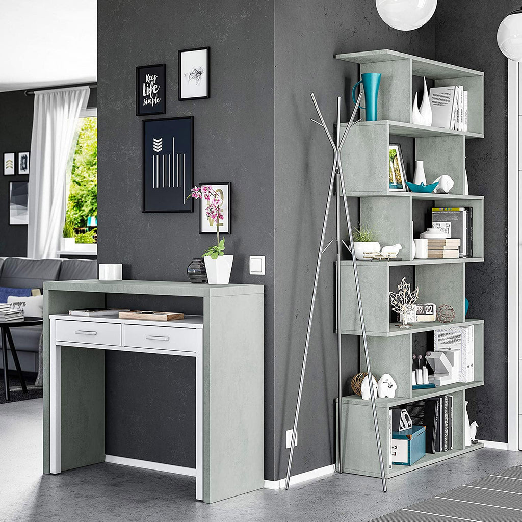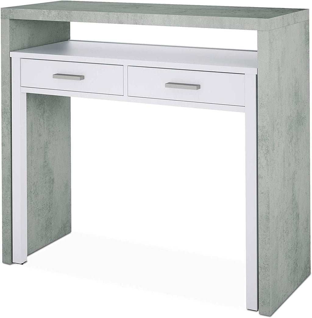 Ausziehbarer Konsolentisch 99x36/70x88 cm 2 Schubladen Weiß und Zement
