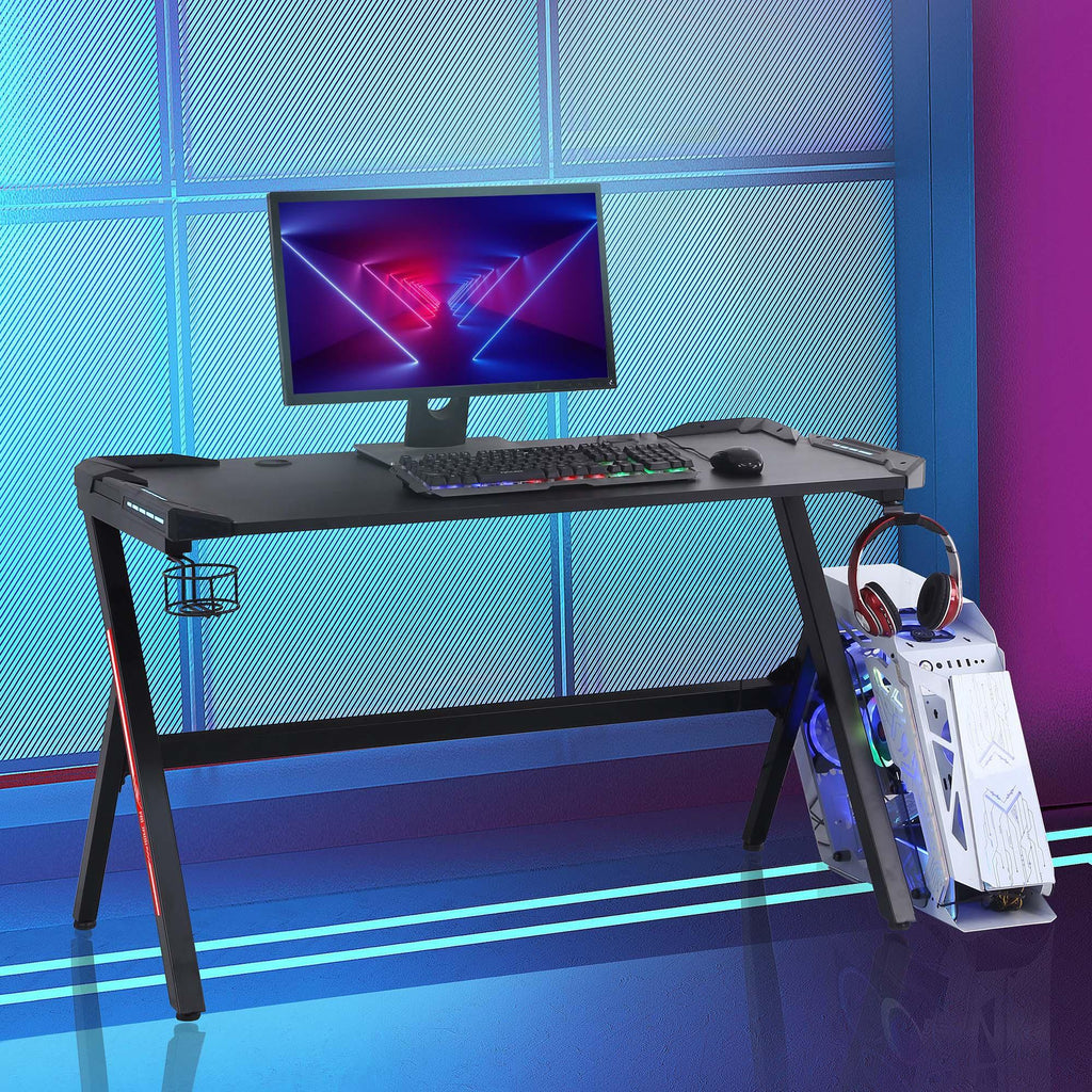 - LED-LEUCHTEN: Dieser Spieltisch hat bunte LED-Lichtstreifen sowohl auf der Tischplatte als auch auf den Beinen. Schaffen Sie die richtige Atmosphäre zum Studieren, Arbeiten oder Videospielen!
