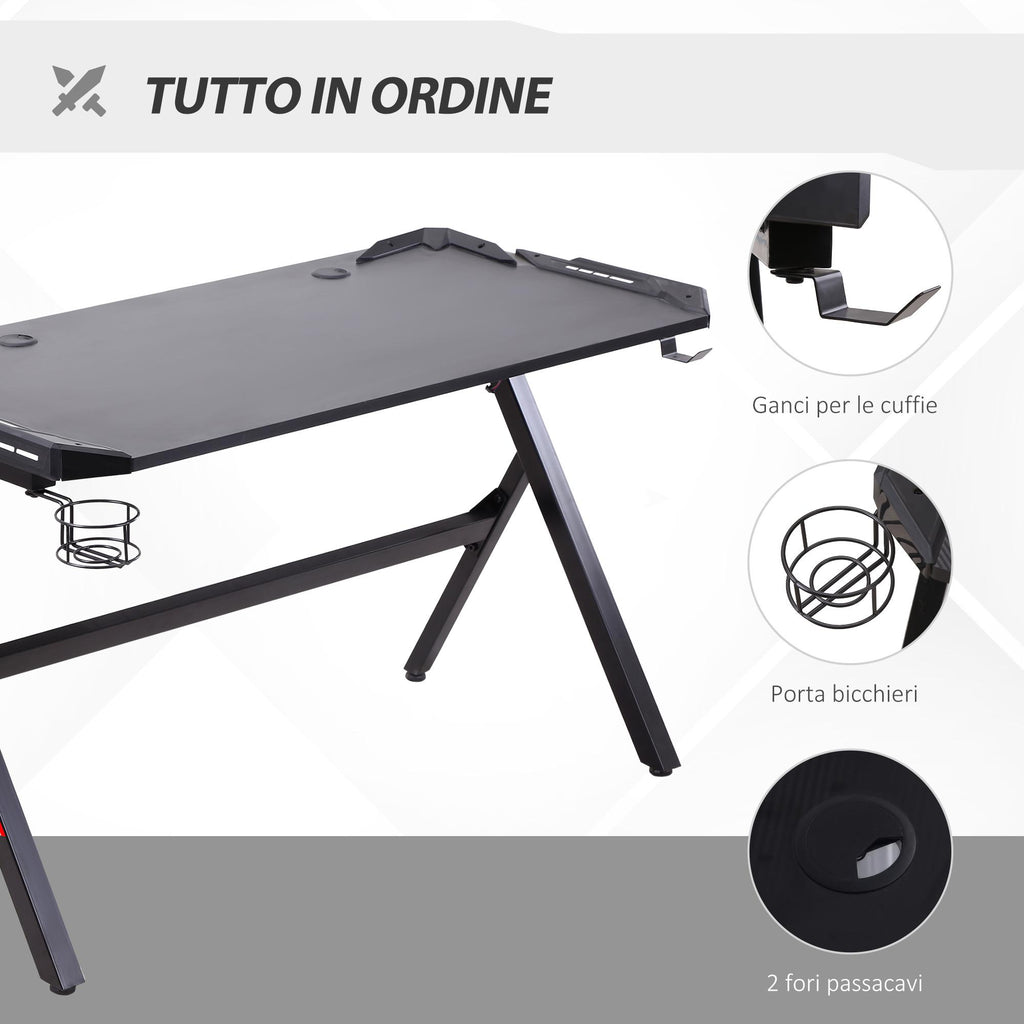 Gaming-Schreibtisch mit LED-Leuchten 120 x 60 x 73 cm aus schwarzem MDF