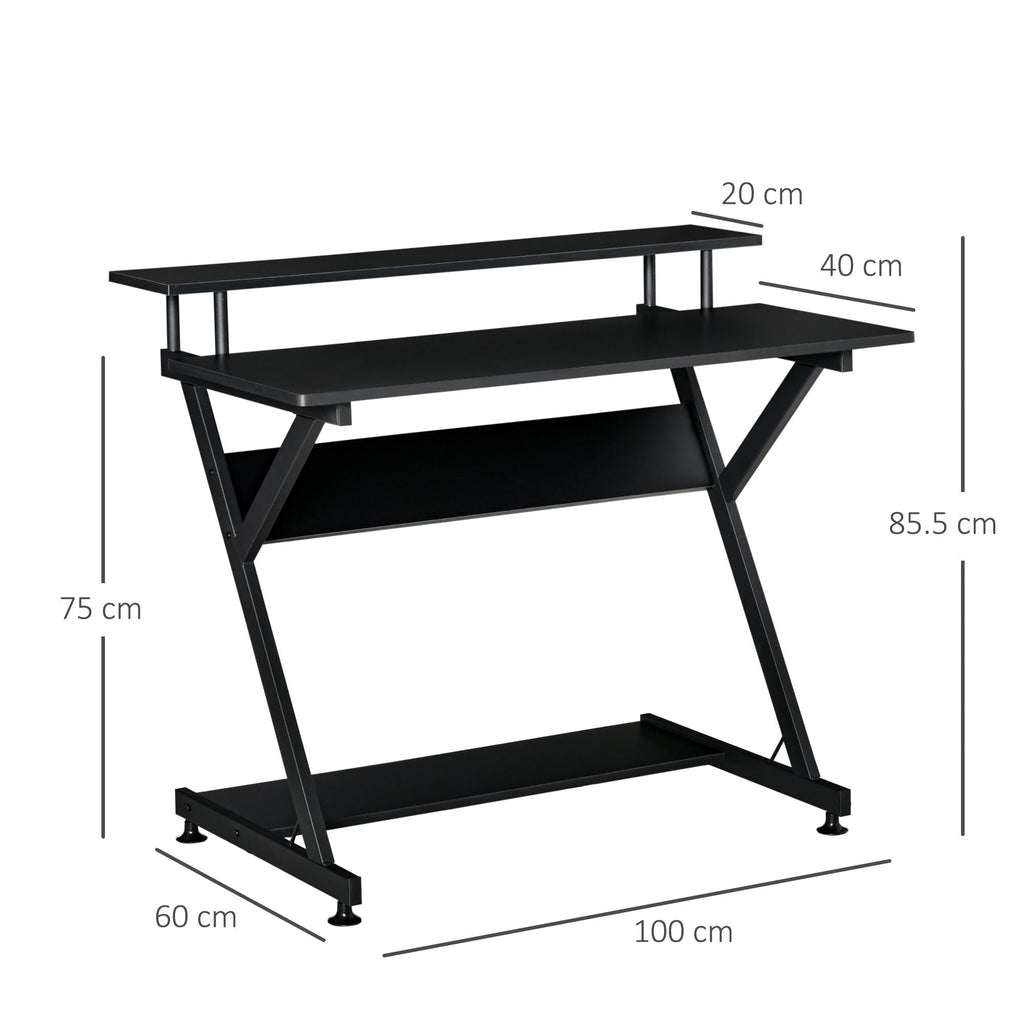Büro-Schreibtisch 100 x 60 x 85,5 cm, erhöhtes Monitorregal aus schwarzem Holz