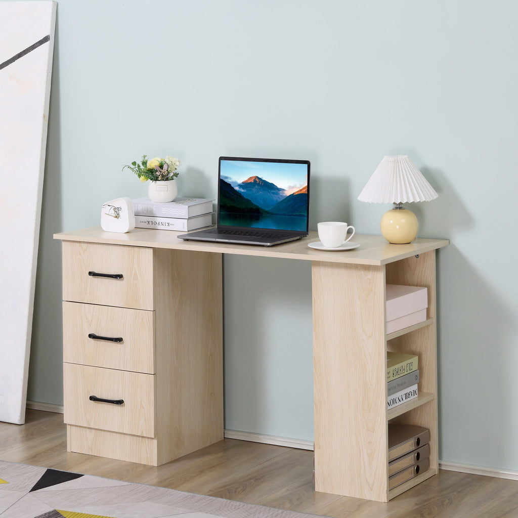 Dieser moderne Schreibtisch mit einer 120 cm langen Platte bietet ausreichend Platz für Computer, Monitore und Schreibwaren in Reichweite. Ideal als Schreibtisch und Büro für Kinderzimmer, enthält er 3 Schubladen und 3 offene Regale zur Aufbewahrung all Ihrer wichtigen Dinge. Das einfache und zeitgemäße Design ermöglicht es Ihnen, diesen Holzschreibtisch mit anderen Möbeln zu kombinieren, um eine Arbeitsecke zu schaffen, die zu Ihrem Raum passt.