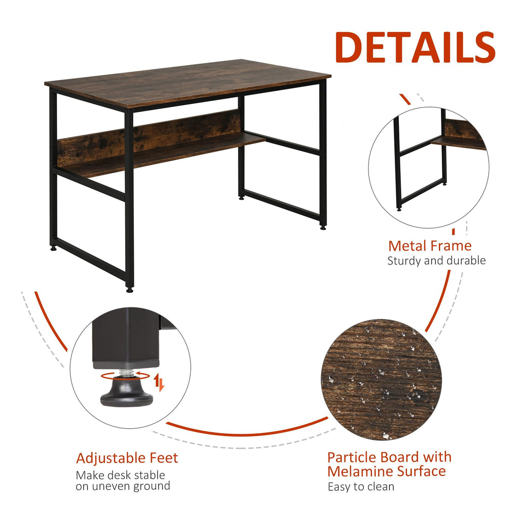 Schaffen Sie mit dem 2-stöckigen Schlafzimmerschreibtisch den perfekten Arbeitsplatz. Es besteht aus einem Metallrahmen, der für Stabilität sorgt, und Spanplatten, die eine praktische Oberfläche zum Anlehnen bieten. Die Arbeitsplatte und das untere Regal haben eine Melaminbeschichtung, die kratz- und fleckenbeständig ist. Das Regal ist mit einer Rückwand ausgestattet, um zu verhindern, dass die Gegenstände, die Sie darauf ablegen, herunterfallen. Mit diesem Schreibtisch können Sie Ihr Bestes geben!