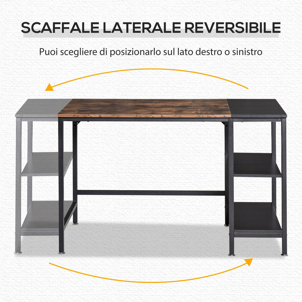 Schaffen Sie mit diesem modernen Schreibtisch einen stilvollen und funktionalen Arbeitsplatz. Es hat eine große Tischplatte und ein praktisches Seitenregal mit 2 Ablagen, die Sie von der gewünschten Seite montieren können. Er eignet sich perfekt als Schlafzimmer- oder Bürotisch, für Computerarbeit oder zum Lernen. Der Metallrahmen und die Holzplatten machen den Schreibtisch stabil und sicher in der Anwendung. Ihr perfekter Verbündeter, um immer einen gut organisierten Arbeitsplatz zu haben!
