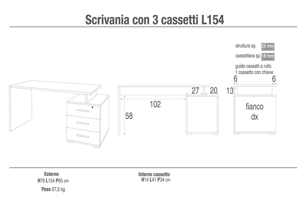 Scrivania da Ufficio 3 Cassetti 154x76x55 cm Noce Stelvio/Noce