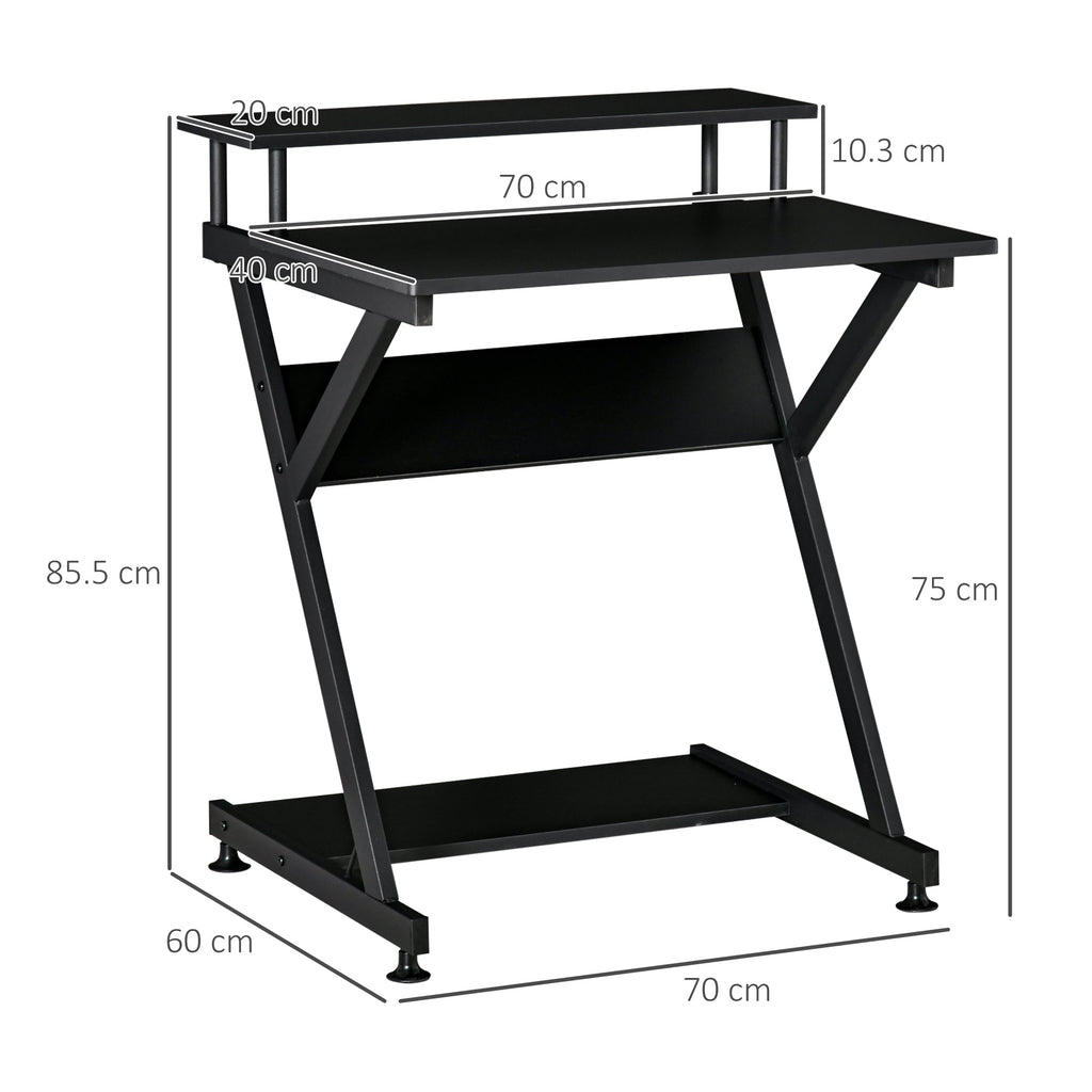 Bürotisch 70 x 60 x 85,5 cm Erhöhte Monitorablage aus schwarzem Holz