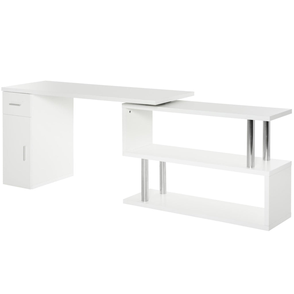 Der Eckschreibtisch hat ein schwenkbares Design, mit dem Sie die Position der beiden Abschnitte nach Ihren Bedürfnissen anpassen können. Sie können ihn in L-Form aufstellen oder die beiden Abschnitte zu einem langen Schreibtisch aneinanderreihen. Es hat ein modernes Design, das Ihren Räumen einen Hauch von Stil verleiht, es ist ideal als Bürotisch oder für zu Hause.